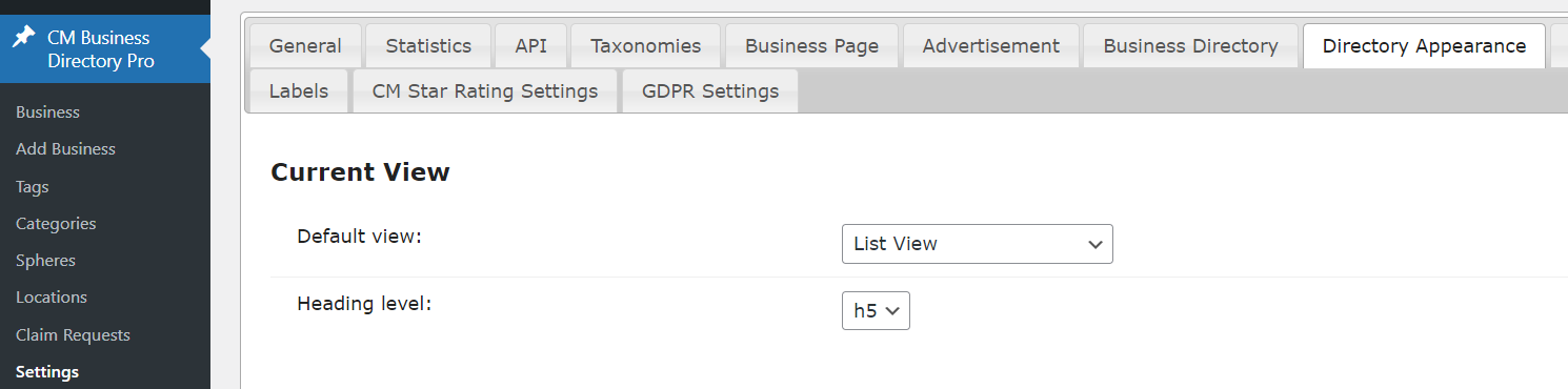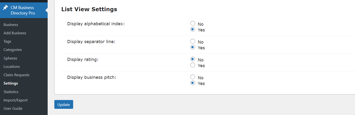 In the plugin settings, you can configure what should be displayed on the business directory page - how many businesses per page, search/sort/filter bars, pagination, etc.