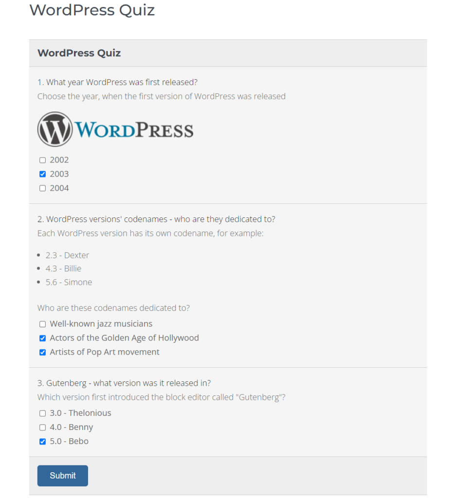 Enhance your website’s interactivity by embedding WP Quiz Plugin assessments, complete with multimedia elements, into your content. This versatile plugin not only enriches the user experience but also serves as an engaging educational tool.